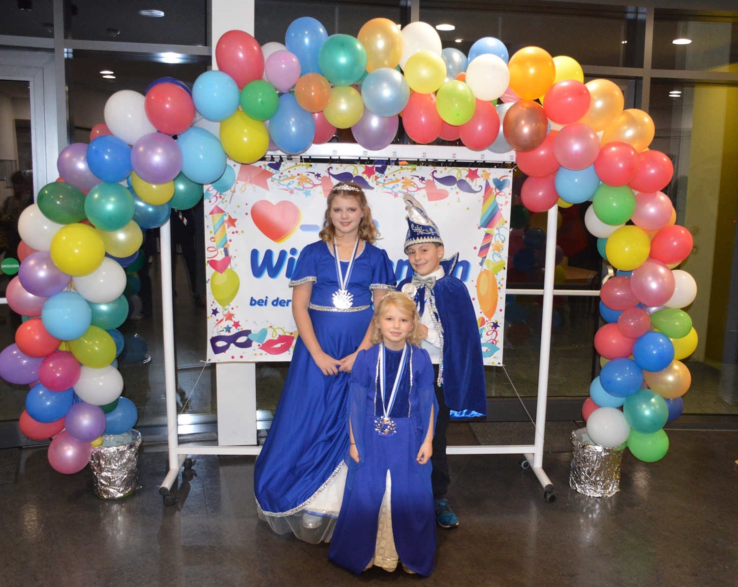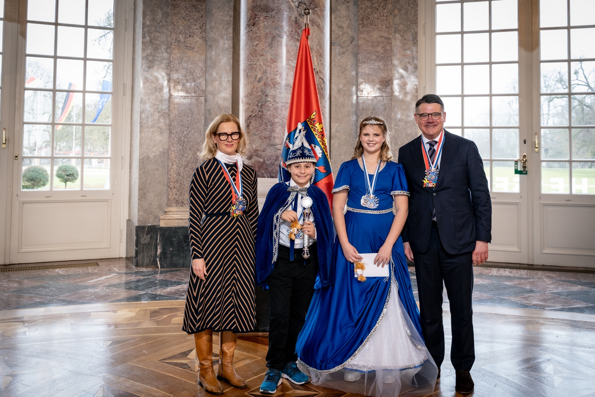 Von links nach rechts: Frau Tanja Raab-Rhein, Prinz Moritz II. (Moritz Schulz), Prinzessin Emily I. (Emily Sivinski) und Ministerpräsident Herr Boris Rhein.